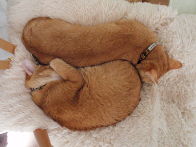 ナツメとコウメは寒い日はぴったり寄り添って、不思議なネコダンコを形成しております。