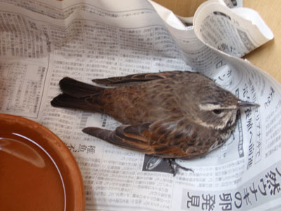 茶色い何か・・・ゴミか?と思ったら何と、鳥でした。
