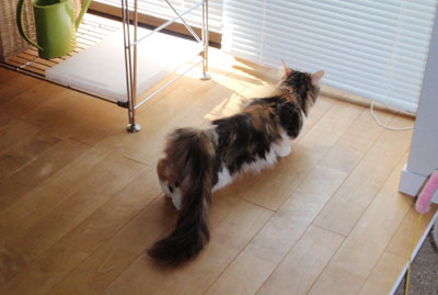 発情期特有の後ろ足を蹴るポーズを繰り返し、クルル~クルル~と鳴き続けながら家中歩き回っていました。