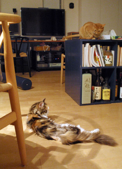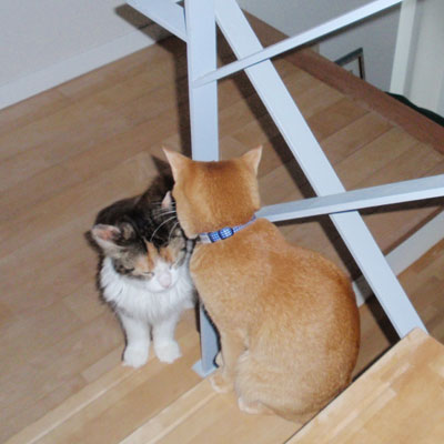 迷い猫が居るとナツメが不機嫌になるので、迷い猫を1階に閉じ込めている時間が長いのですが、それはそれでちょっと寂しそうです。