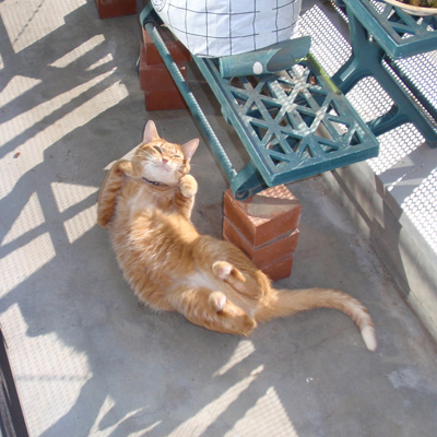 そこは、幾分ざらついた、コンクリートの床があり、猫の先祖が砂漠に育った旧い記憶が突然蘇ってくるのでしょうか。