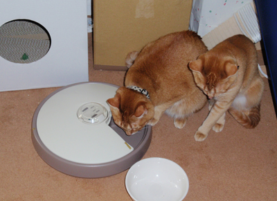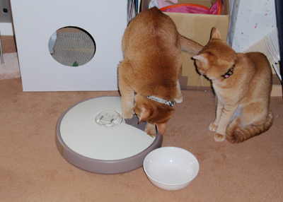 水は循環式水飲み器を食事は自動餌出し器を準備して出掛けました。